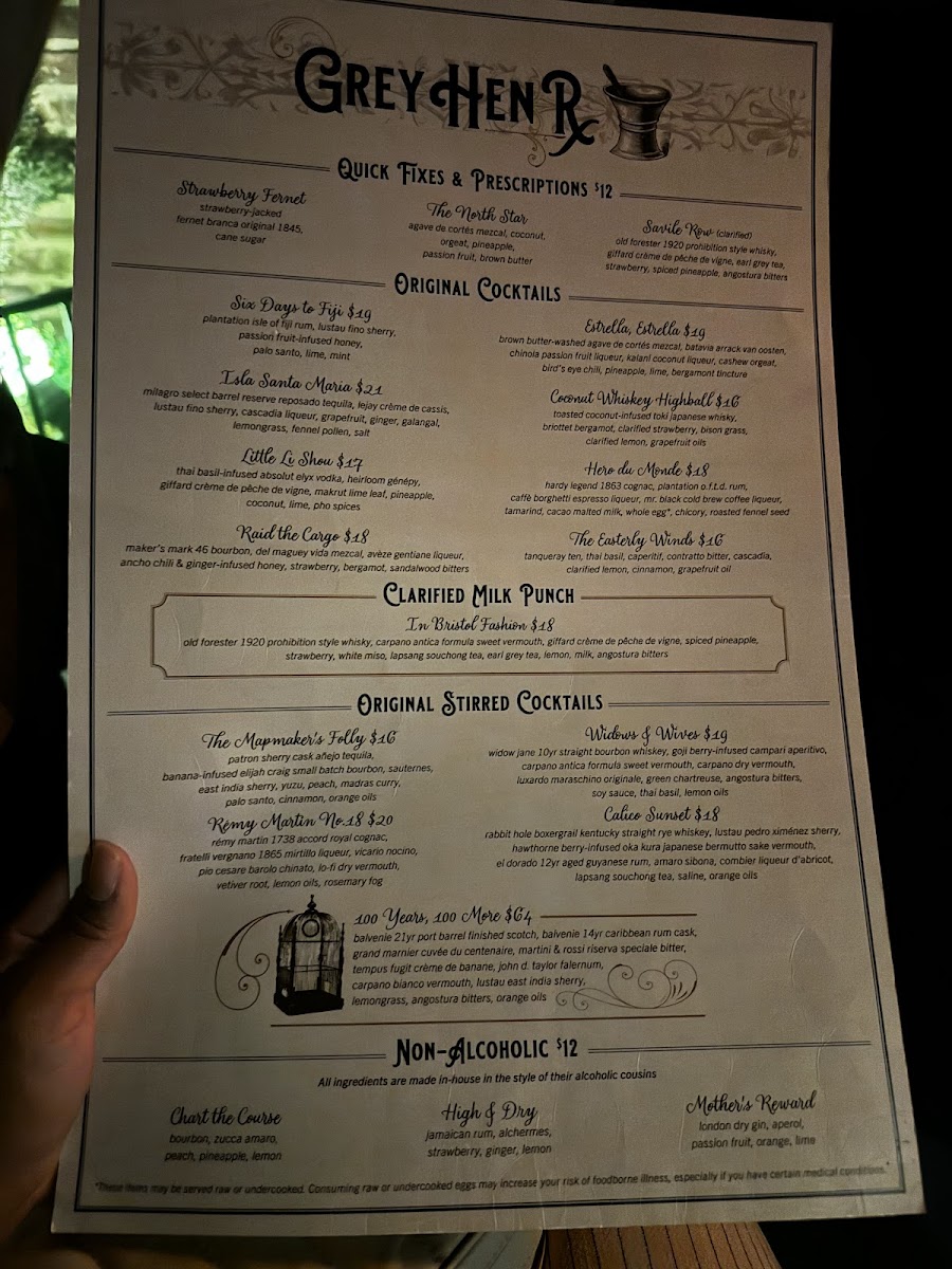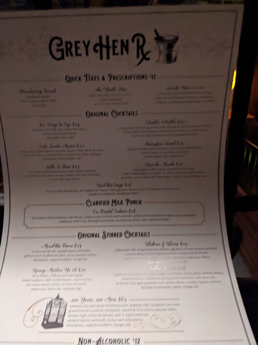 Welcome to Grey Hen Rx at Century Grand, a captivating cocktail lounge located in Phoenix, AZ. With an apothecary theme, Grey Hen Rx is not just about drinks; it’s an experience. The menu boasts an array of original cocktails such as the enchanting Six Days To Fiji and the adventurous Estrella, Estrella. These carefully curated beverages showcase a commitment to quality and creativity.